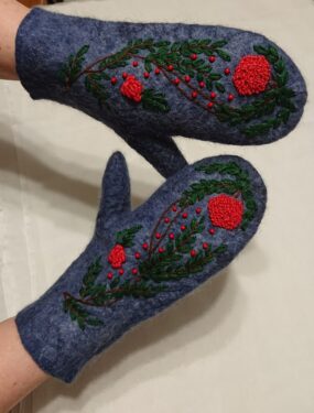 🌿Октябрь 2024. Варежки, «змеиный» принт, работа с пухом