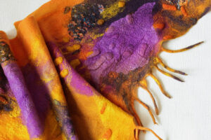 - Декорировать войлок тканями, волокнами, пряжей, префельтом.