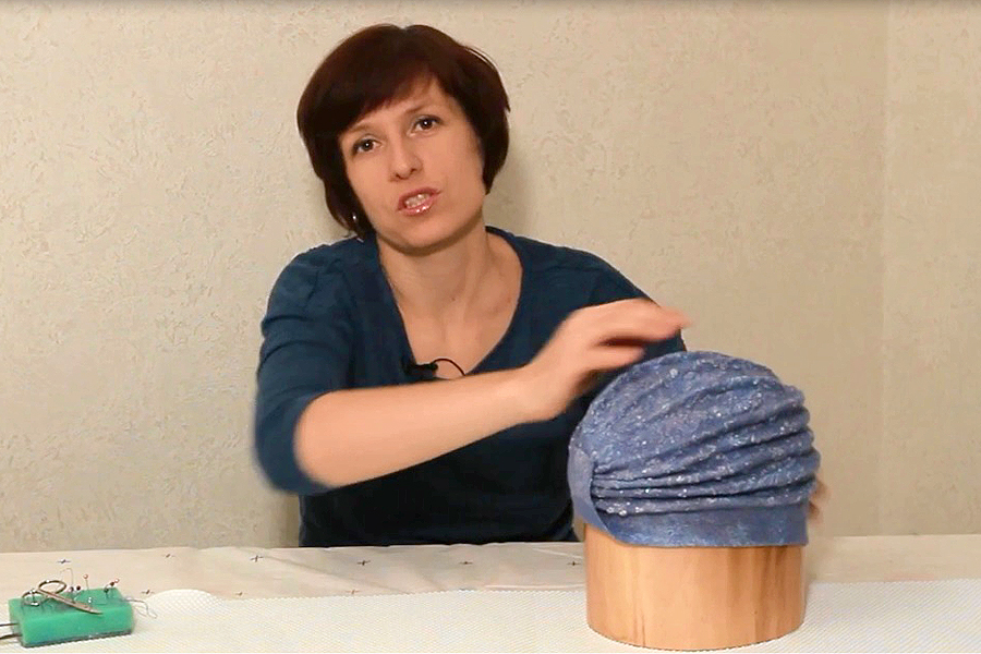 Я покажу, как придать форму готовой шапке-чалме. Поговорим о различных способах драпировки головных уборов. Расскажу, как придать форму чалме на болванке, на мячике и на других подручных средствах. Покажу, как заложить складки на головном уборе, как высушить и сшить чалму. Из одной заготовки Вы сможете получить изделия нескольких разных форм и выбрать, какой вариант Вам больше к лицу.