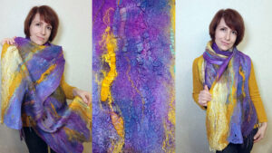 Курс «Шерстяной импрессионизм» — Ваш билет в мир творчества. В рамках курса мы научимся делать большие, эффектные и удобные шарфы-палантины. Вы освоите работу с цветом и фактурами, сможете применять полученные знания на любых изделиях.