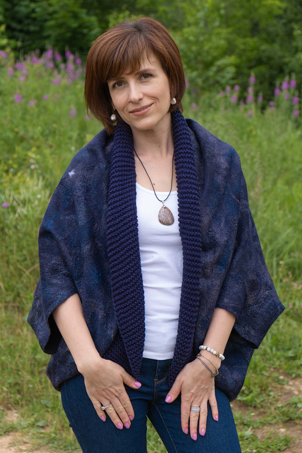 Приглашаю Вас на курс «Кардиган-кокон или болеро в технике валяния». С работой справится каждый – даже новичок. По материалам курса Вы сделаете уютный и стильный кардиган-кокон на любой размер и небольшое болеро.