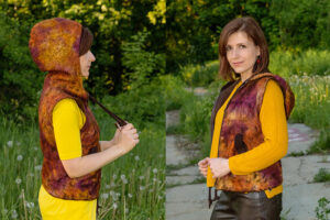 Если у вас небольшой опыт валяния, и Вы хотите научиться делать плечевые изделия (туники, платья, жилеты, пальто), для себя, близких и на продажу, курс «Летнее пальто и жилет с капюшоном» хороший вариант для старта.