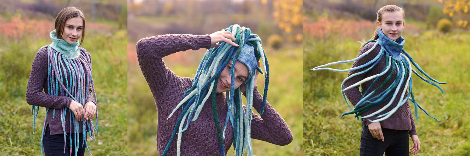 В курсе мы рассмотрим особенности создания тонкого, хорошо драпирующегося войлока и объемных легких дредов, которыми так хорошо можно украсить креативные шапки, шарфы и одежду. Разберем способы крепления и драпировок дредов, возможности трансформации головных уборов с дредами.