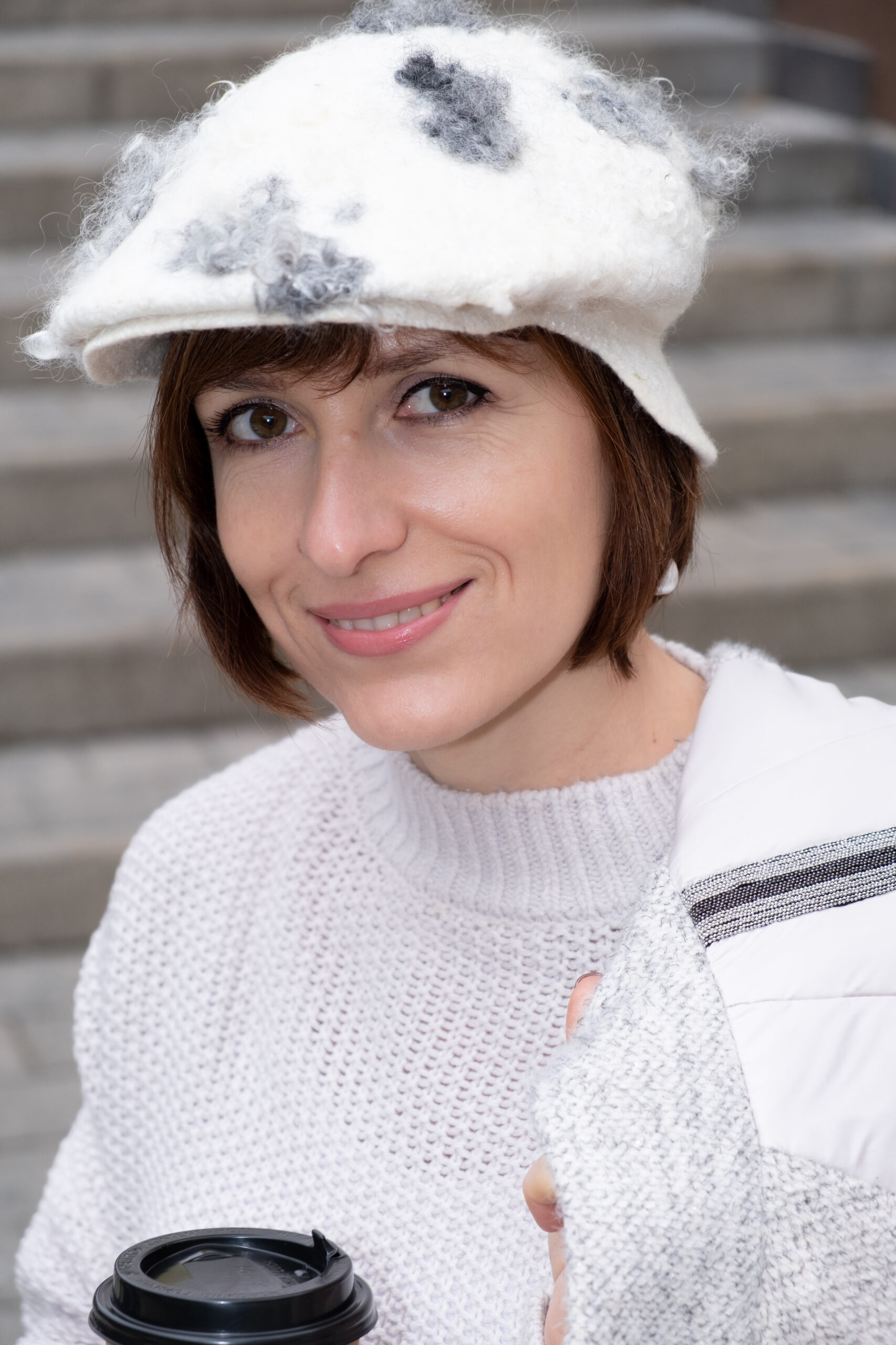 По материалам курса вы сделаете классический (мужской) шарф с бахромой и декором из волокон и пряжи, а также очень стильную и модную шапку с отворотом и фактурным декором.
