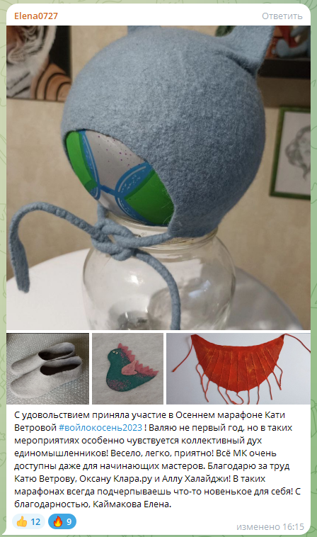 Любит находить простые технологические решения и раскладывать всё по полочкам — это помогает ученицам легко справляться с любыми войлочными проектами.